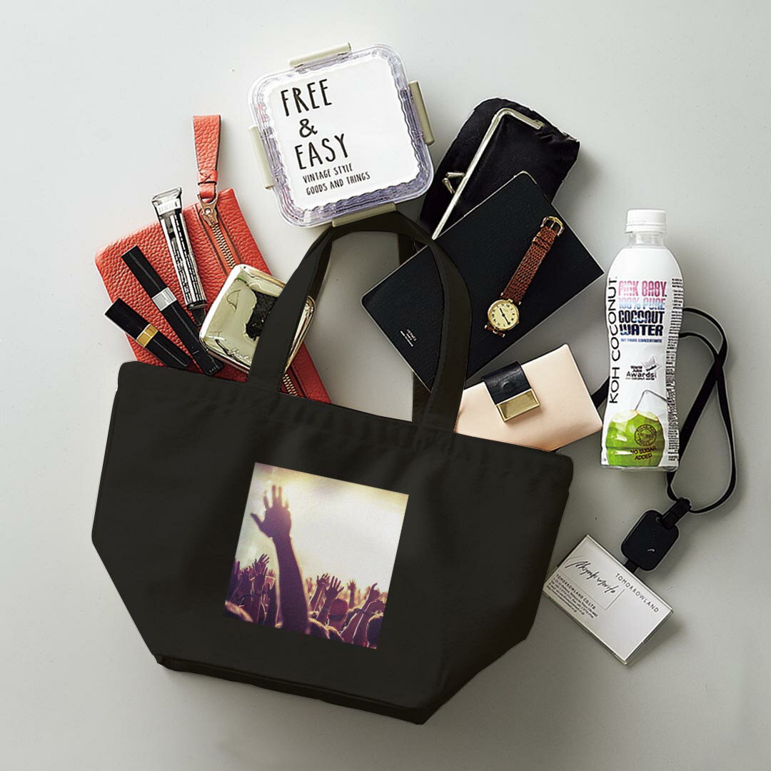 デザインランチバッグ キャンバス デイパック バッグ レディースバッグ トートバッグ ナチュラル 黒 black 011442 フェス 音楽 ミュージック
