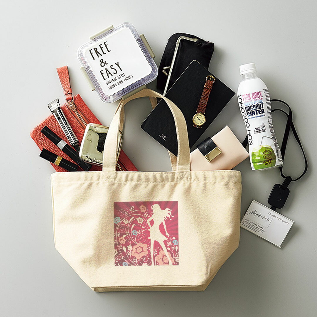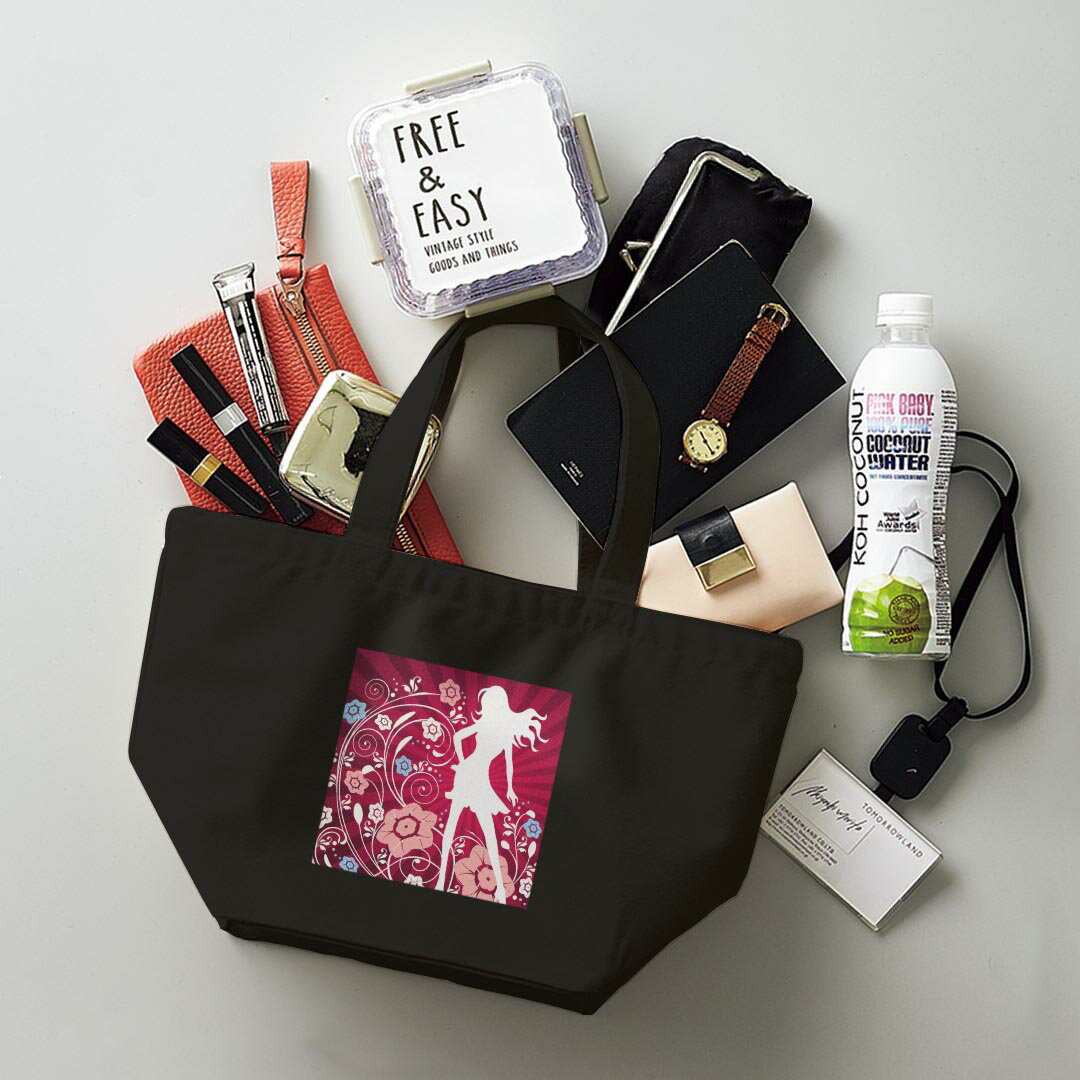 デザインランチバッグ キャンバス デイパック バッグ レディースバッグ トートバッグ ナチュラル 黒 black 007548 花 フラワー 人物 ピンク