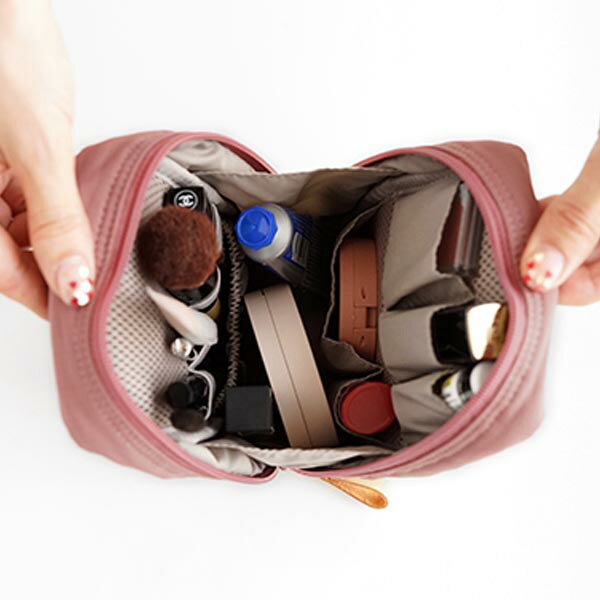 散らばりがちコスメを効率的に収納する コスメのバッグインバッグ 必要な時にさっと取り出せる クッション性があって中身が壊れる心配なし 何をどこに入れるかが一目でわかる 縦に2層ポケットが付いてるので無駄なく収納できる ビンテージの風合いの肌触りの良い素材 リップグロスやブラシなど収納できるホルダー付き 中身が落ちにくいデザイン 商品名 invite.L Standing Makeup Bag in bag サイズ 125 X 175 X 70 (mm) 素材 ナイロン 製造元 invite.L 発売元 エスアンドジェイ株式会社 原産地 韓国 ご購入前に ・軽い汚れはウェットティッシュで軽く拭いてください。